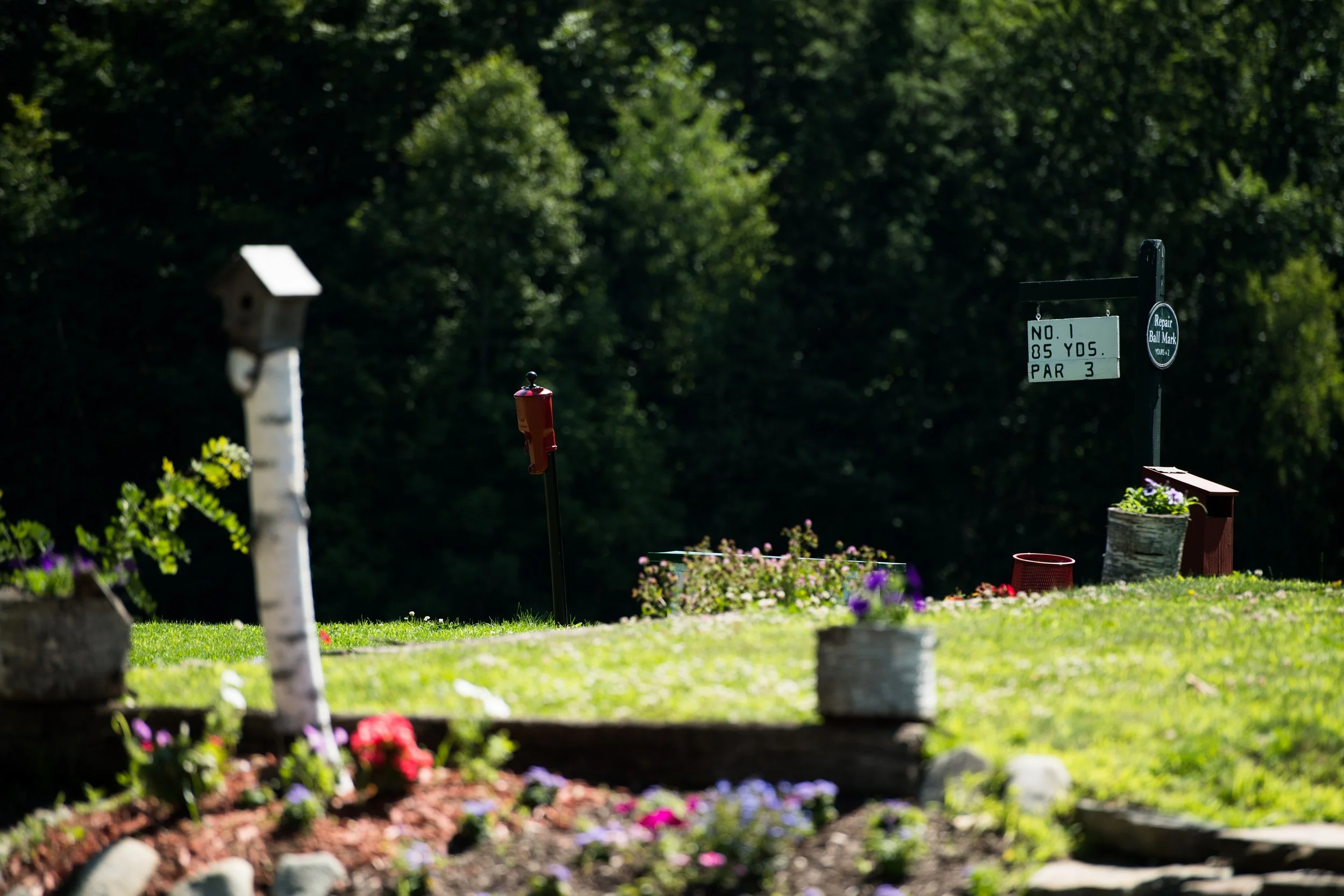 The professional putting surface supports stroke work and green reading. Campers train pace control, alignment, and routine.